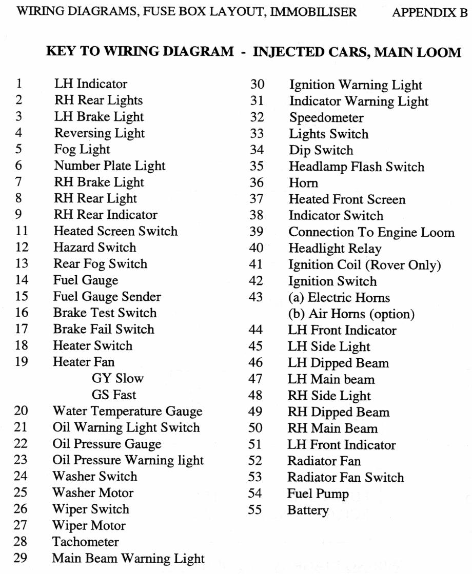 1998 circuit diagram (car loom) 1998 circuit diagram (key) 2000-on circuit diagram (car loom)